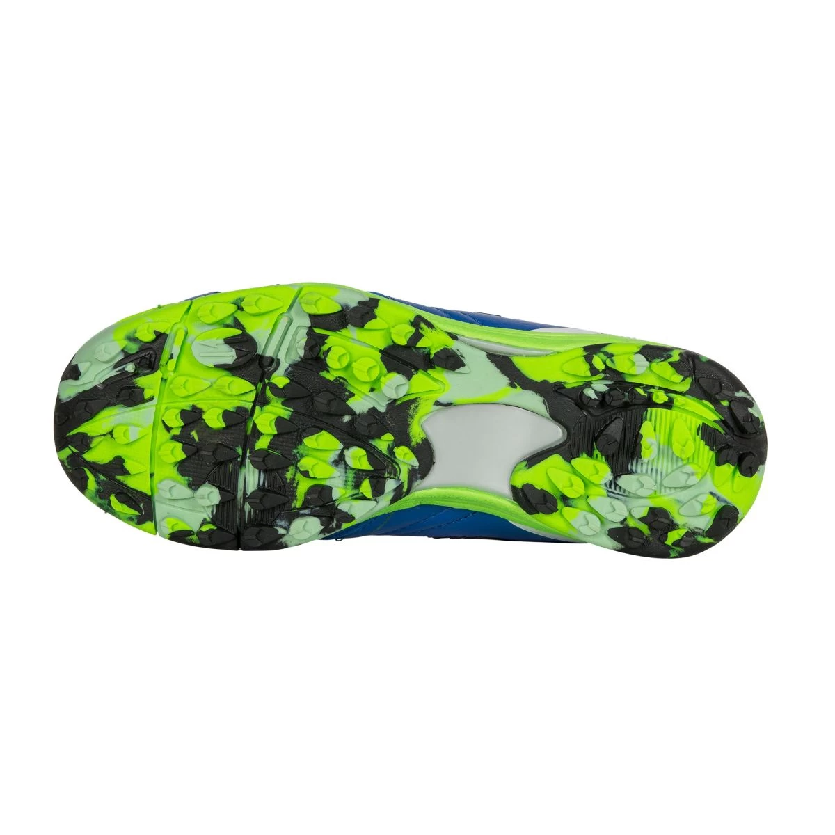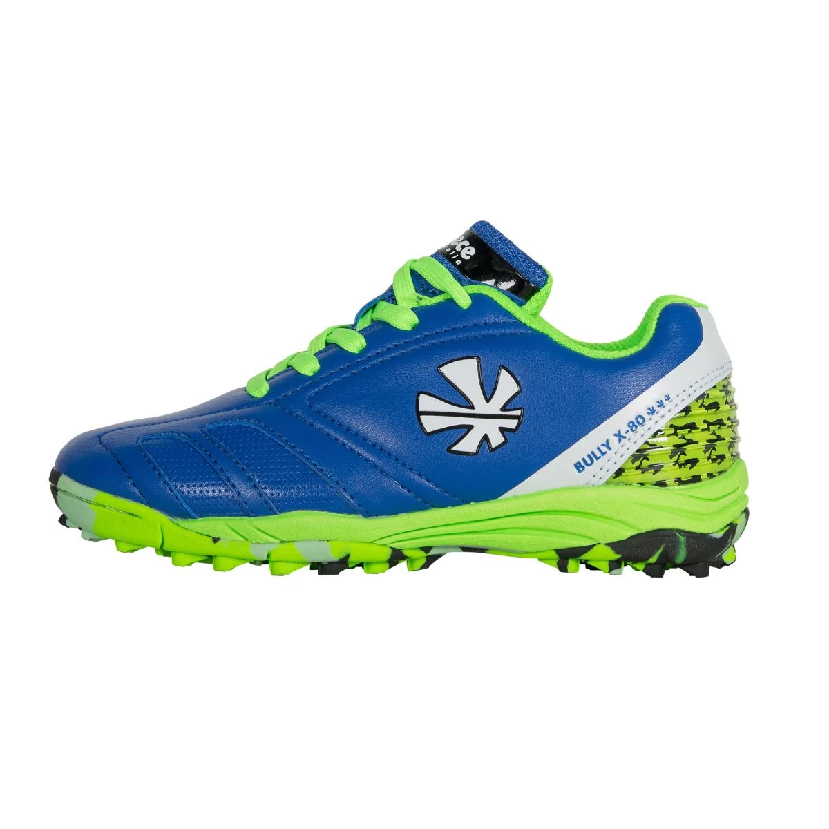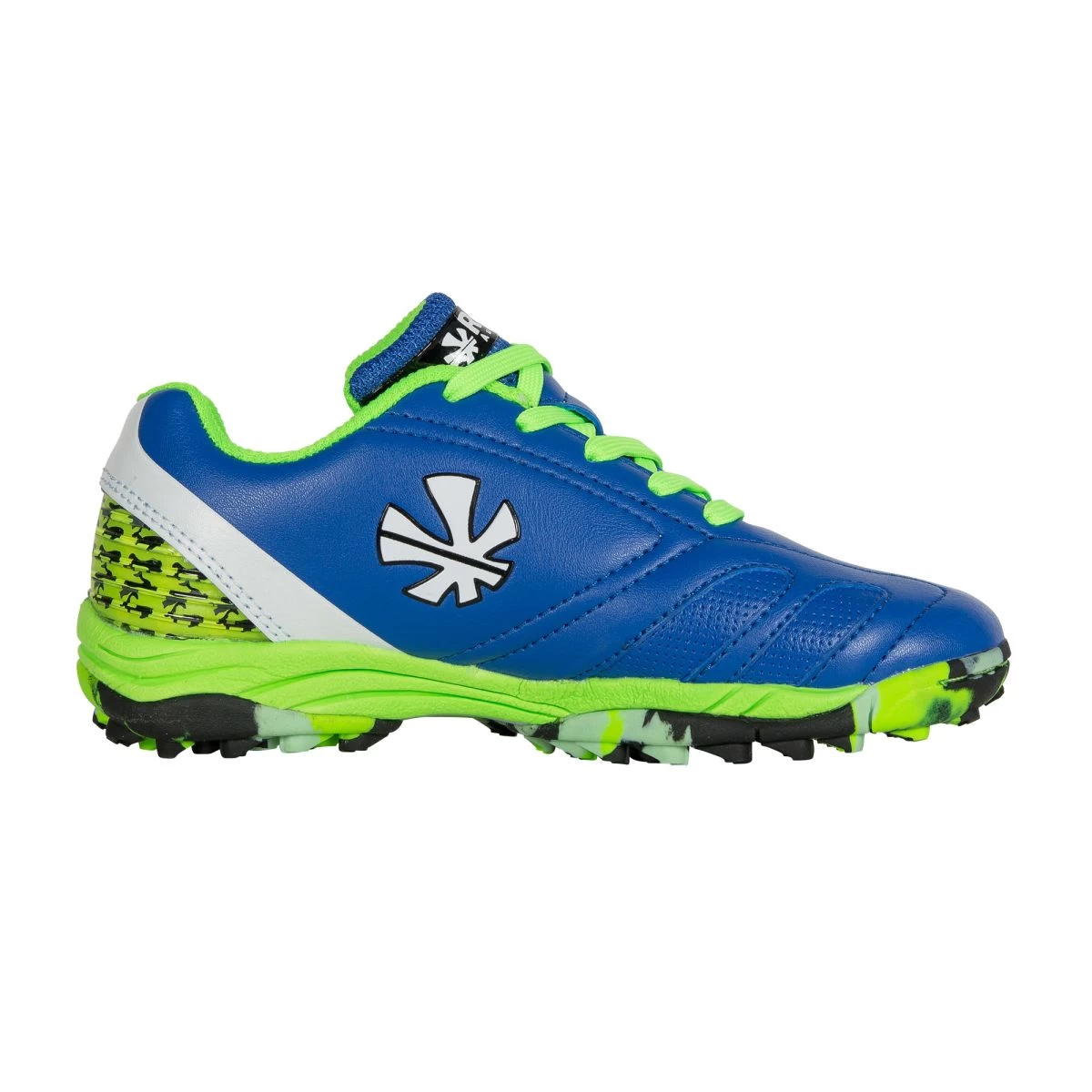 This outdoor hockey shoe for juniors offers optimum grip thanks to the durable studded sole. The studs are positioned to provide maximum grip in all directions and optimally distribute the pressure on the foot. The shoe provides excellent cushioning thanks to the lightweight, extra shock-reducing insole. The sturdy but breathable upper feels soft and provides good support to the juniors feet. Sizes 28 to 35 the shoe is fitted with a Velcro closure and from size 36 with lacing.