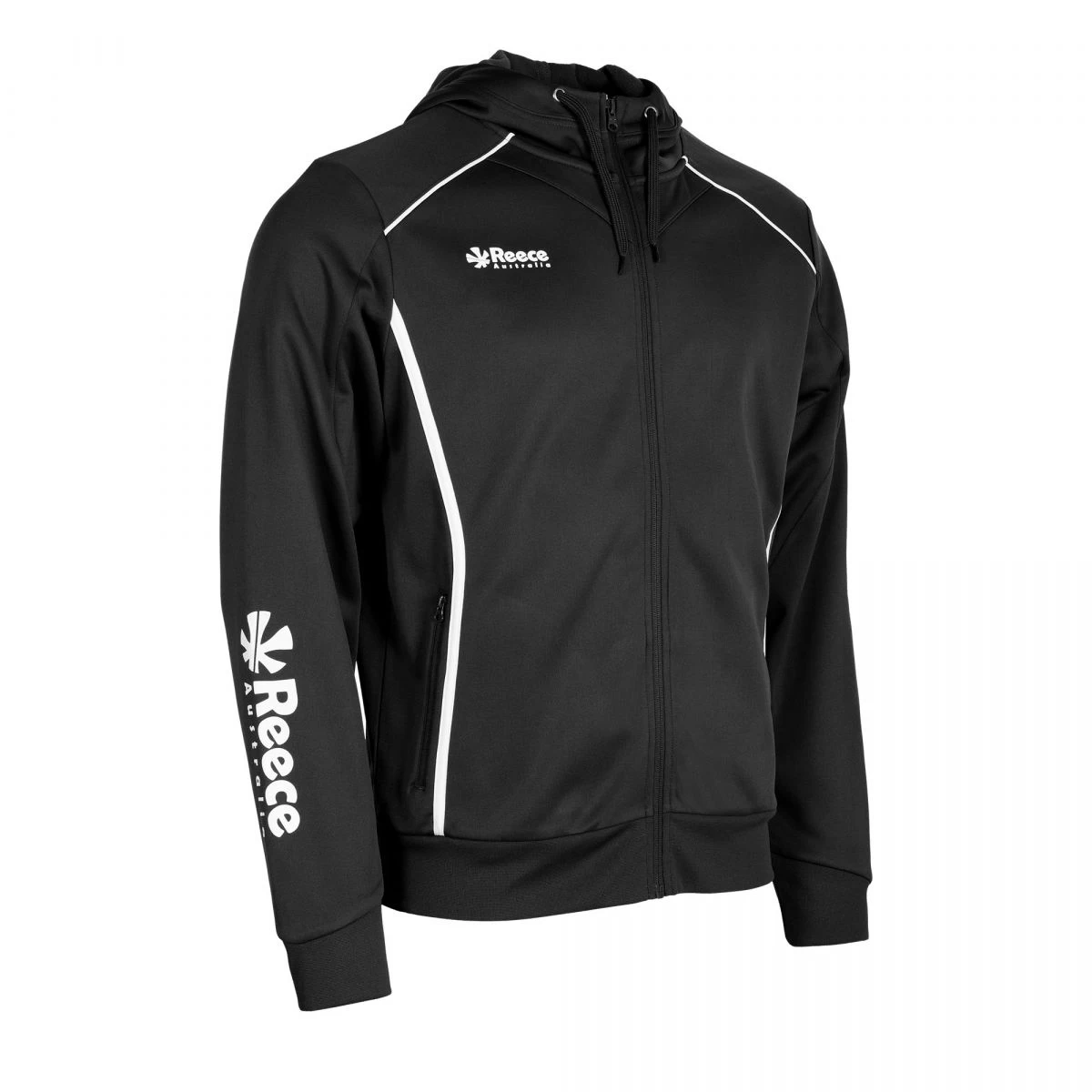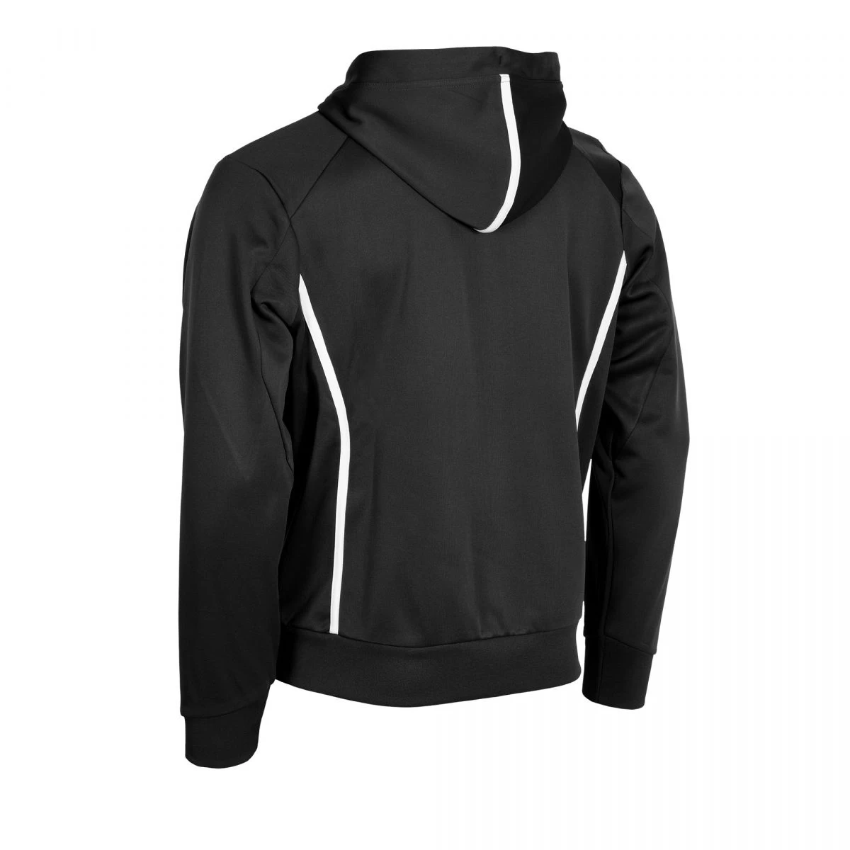 This sporty hooded jacket has an optimal fit and is ideal for casual, training and sports. The jacket has a brushed inner for extra comfort. The jacket contains two zipped pockets on the front. The collar and cuffs are made of elastic rib material.