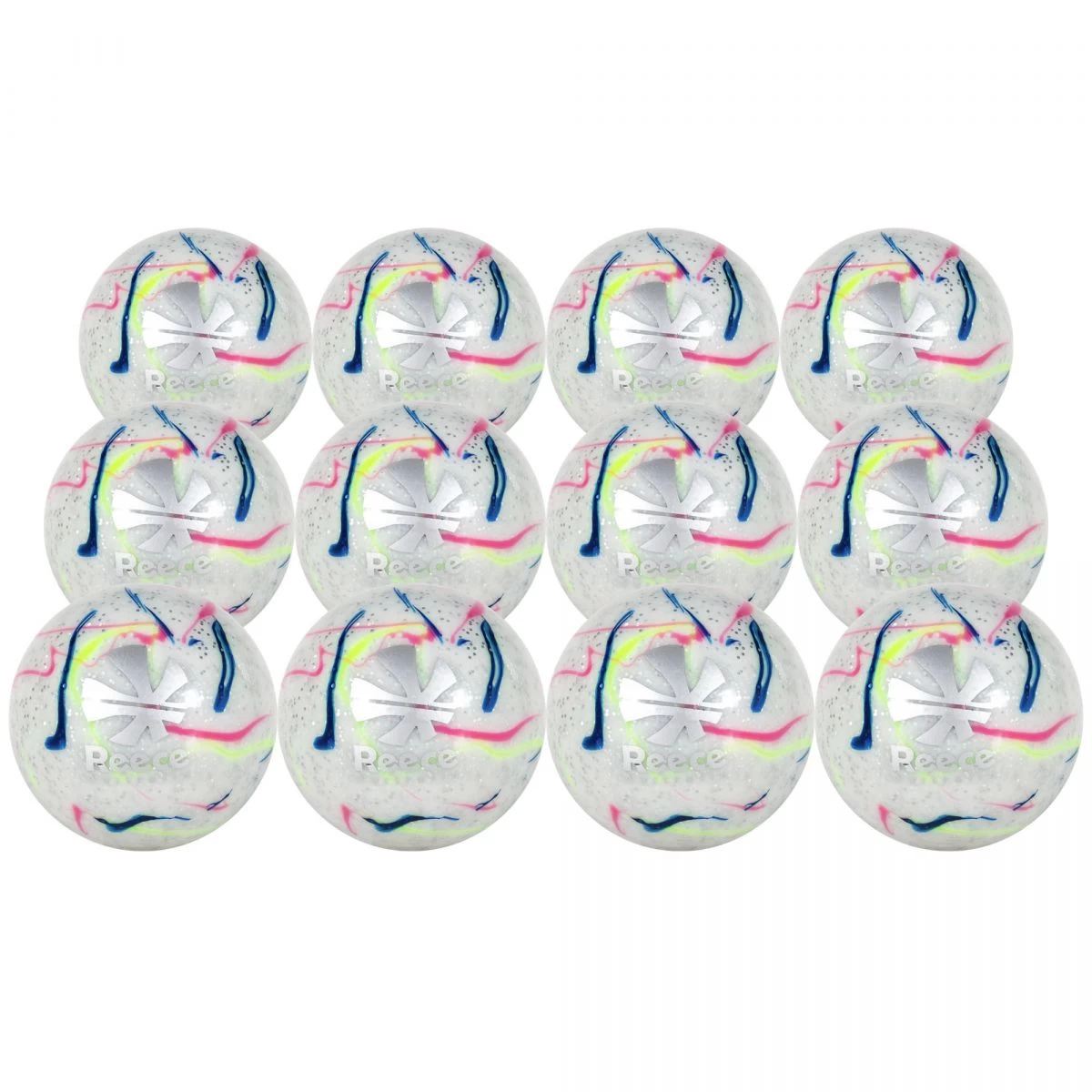 These hockey balls with glitter design come in various colours. The outside is made of PVC, with flat design. The inside of the ball is hollow. The balls are packed per 12 pieces.