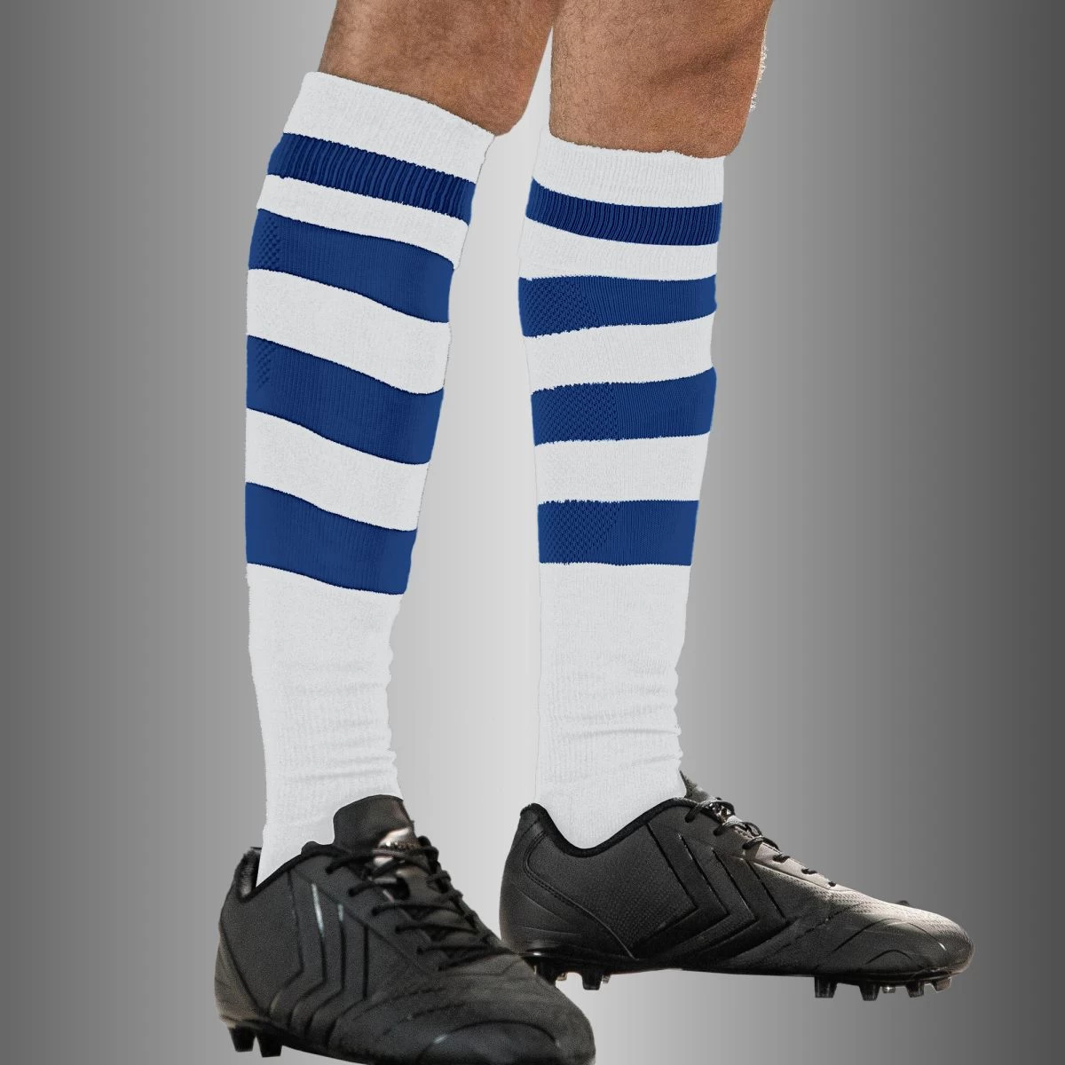 These knee length socks from Stanno are made of ‘high stretch’ polyester, for the best fit. Shin area is extra stretchable for shinguard placement. Mesh area at rear of sock for extra breathability. Around the ankle the sock has a protective impact zone. And to prevent scouring, and therefore blisters, the sock has a flat seem and a reinforced heel, sole and toe. Due to the double elasticated cuff the sock stays in place. These anatomically shaped socks are provided with a left/right fitting indicator.