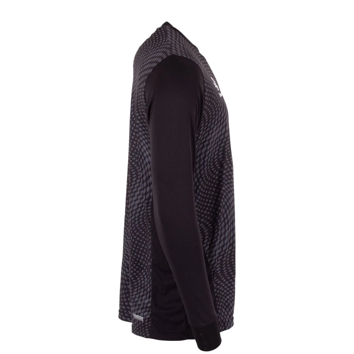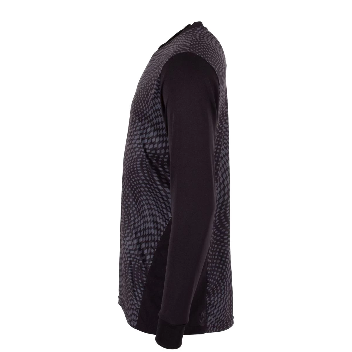 This comfortable goalkeeper shirt with stretch is ideal for hockey because of the large fit that makes the shirt suitable to wear as a layer on top of protective clothing. The cuffs are finished with comfortable rib material and have a high stretch content. The pattern on the body is sublimated and therefore remains beautiful even after frequent washing. The goalkeeper shirt features a minimal V-neckline and printed logos. Mesh at the side seams provides ample ventilation. The back of the shirt is slightly longer than the front for an optimal fit.