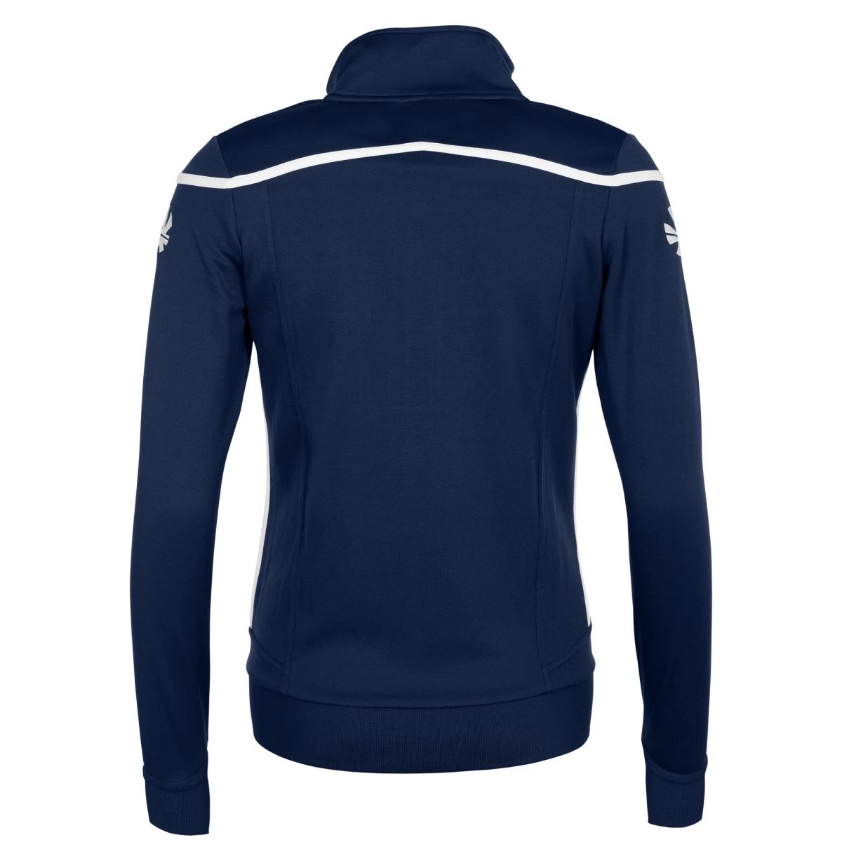This comfortable top is ideal for wearing before, during and after sports. The brushed inside, upstanding collar and elastic cuffs make the top nicely warm. The top has a feminine, tailored fit. Two pockets with zip on the front, contrasting coloured piping in the side. The logos on the arm are embroidered, printed on the chest. The fabric of which the top is made, polyester TTS, is smooth, durable material that is easy to maintain.